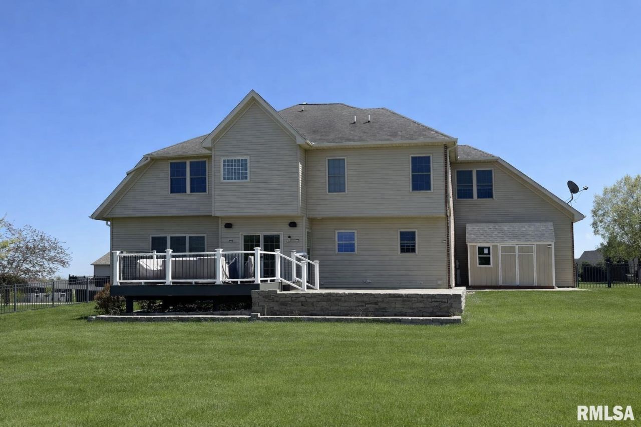 Stunning, thoughtfully designed, 6-bedroom, 4-bath, 1.5-story home on a spacious lot in the Hunters Trail subdivision, located in the highly regarded Dunlap School District. This home showcases brick exterior accents, a dramatic two-story entry, and an oversized 3-car garage. Inside, youll find an elegant dining room with hardwood floors, crown molding, and wainscoting; a main-floor study with hardwood flooring and crown molding; and a spacious family room featuring a statement chandelier and an LED fireplace. The gourmet kitchen offers top-of-the-line stainless steel appliances, granite countertops, a large center island, and tile flooring with coordinating backsplash. A separate secondary kitchen provides added convenience for prep or cooking aromatic meals while keeping the main kitchen spotless. Retreat to the impressive primary suite with tray ceiling and built-in speakers. The en-suite bath includes a walk-in closet, tiled shower, corner jetted tub with glass block window, and dual sinks. Upstairs, youll find four additional bedrooms, including a private guest suite with its own full bath. Another shared bath features a double-sink vanity plus a separate area for the toilet and shower?an ideal layout for busy mornings. The finished basement features a theater area with built-in speakers and an additional bedroom with egress window and full bath. Outside, enjoy a new composite deck, paver patio, and a shed, plus a backyard fence with aluminum fence. Move in ready!