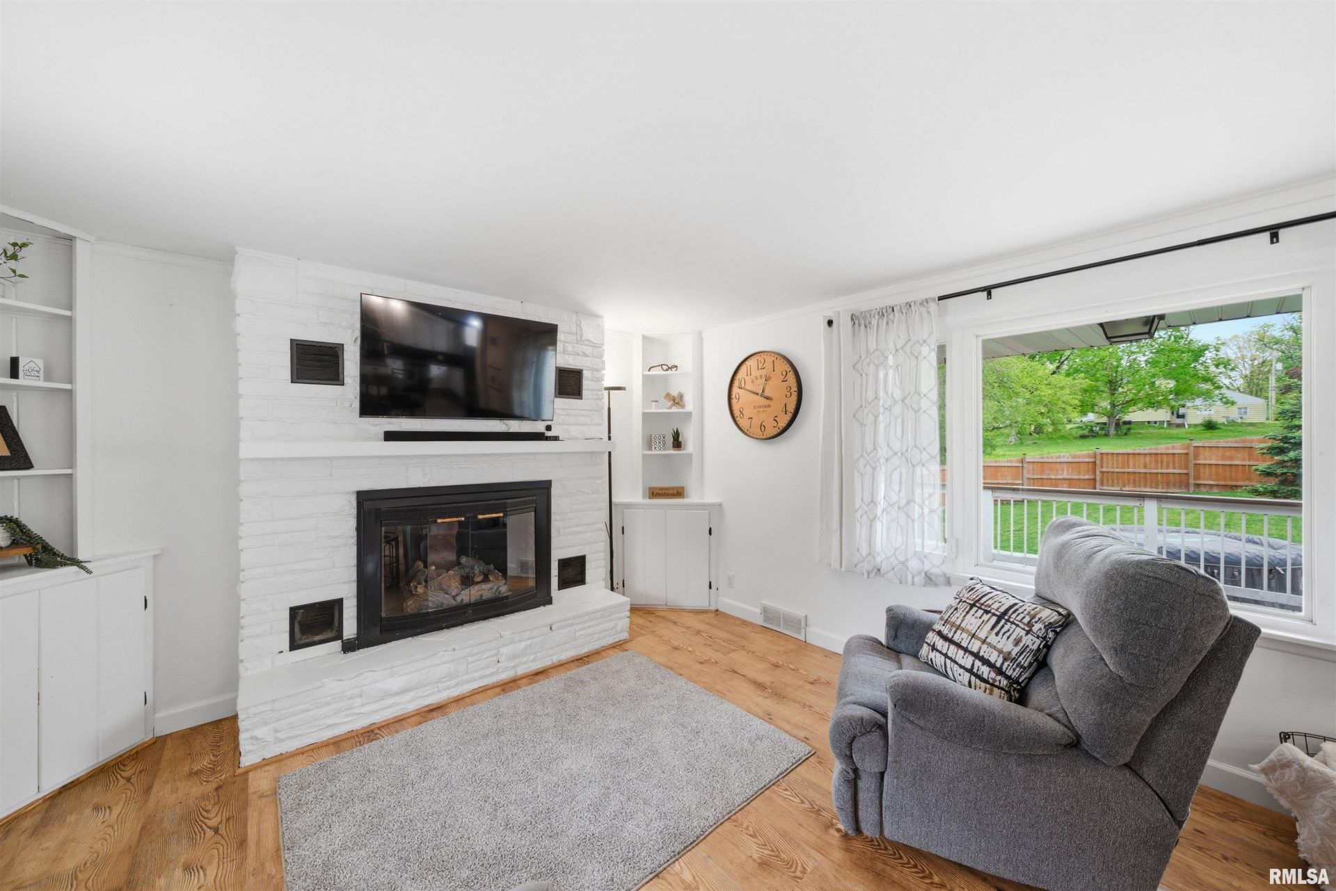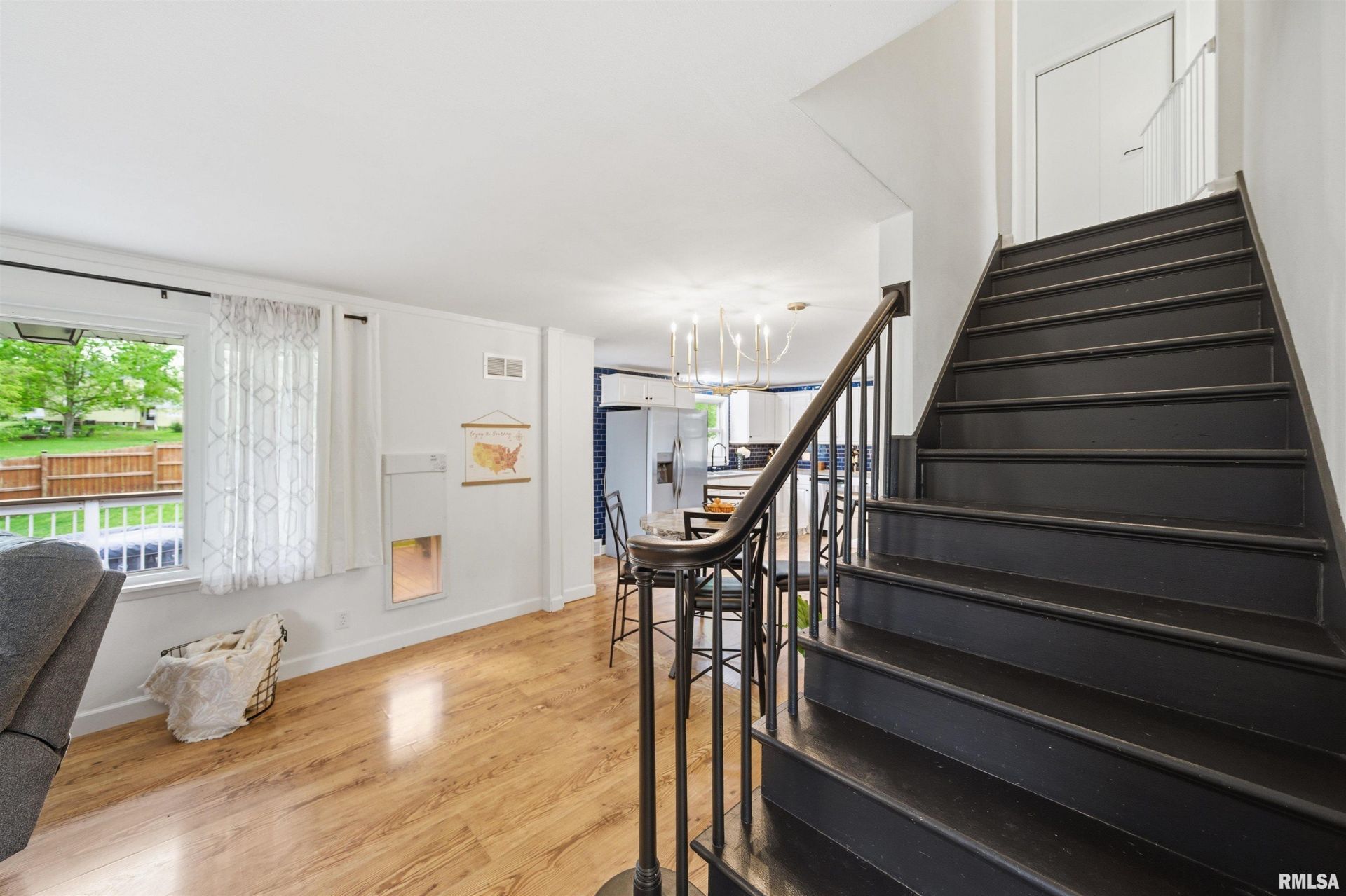 Prepare to fall in love with this completely updated 4-bedroom, 2-bathroom 1.5-story home in Peoria. The main level introduces a gorgeous living room anchored by a show-stopping stone fireplace flanked by built-ins, massive picture windows, and a sleek black staircase leading to the upper level. The open layout transitions into an informal dining area and a stunning custom kitchen loaded with granite countertops, stainless steel appliances, under-cabinet lighting, and a central island. Rich emerald green walls, brushed gold fixtures, striking black and white floor tiles, and a marble vanity bring designer flair to the main floor full bathroom. Two large main floor bedrooms feature spacious closets and upgraded lighting. The upper level is an incredible retreat with vaulted ceilings, skylights, crisp white walls, and rattan pendant lighting. This floor can serve as a massive private primary suite alongside an office area, completed by a luxury bathroom with glass shower doors and a bold royal blue vanity with brushed gold hardware. Outside, the property is an entertainer's dream with an expansive deck and pergola overlooking a private, fenced backyard. This property also features an oversized one-car garage, nice landscaping, and the washer and dryer are included. Best of all, major high-ticket maintenance is already taken care of with a brand-new furnace installed this year!